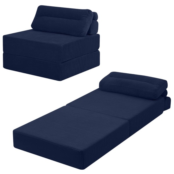 MeMoreCool Convertible Sofa Bed Folding Bed Chair, Boneless Sleeper Chair with Pillow, Fold Out Couch Lazy Floor Futon Lounger for Guest Small Space, Portable Foldable Mattress Couch Single, Navy