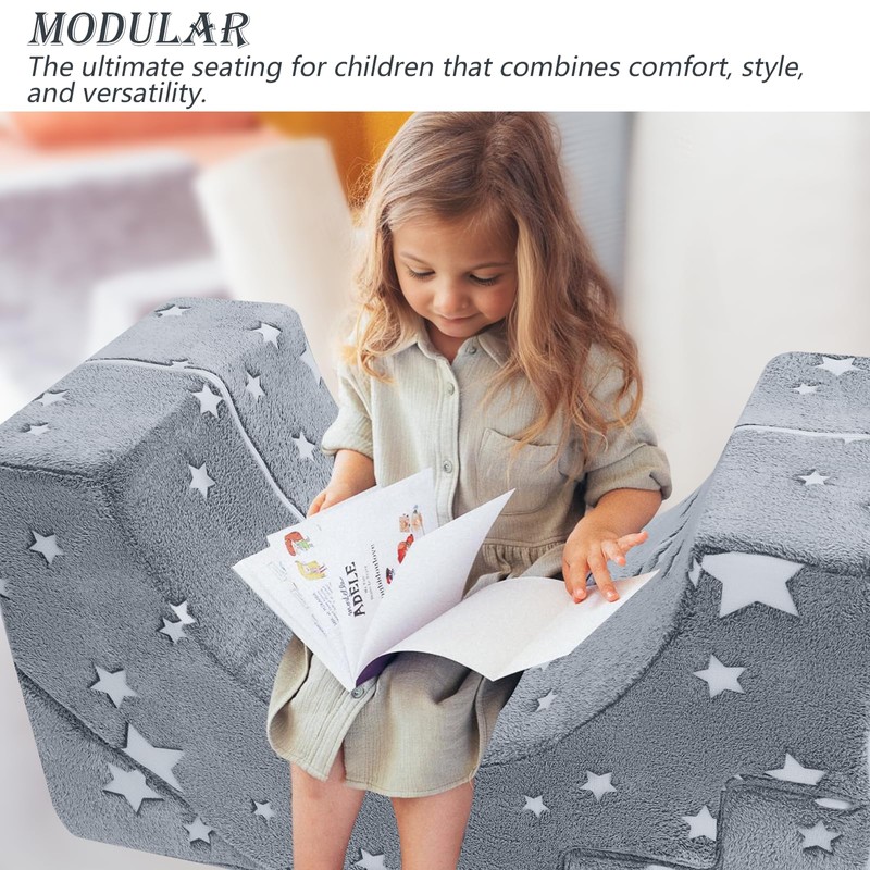 - [Versatile Kids Modular Couch] This kids sofa couch is not just an arch climbing couch! With its convertible and sectional design, you can adjust this playroom furniture, such as a baby slide couch, modular kids seating, folding floor lounger, foam couch playset, toddler loveseat, or even a chair set, creating the perfect room for your child to read, play, or relax