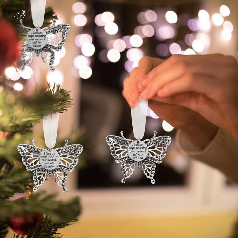 Memorial Ornaments Butterfly in Memory of Loved One Sympathy Gifts Christmas Tree Hanging I Have an Angel Watching Over Me Bereavement Gifts with Silk Ribbon