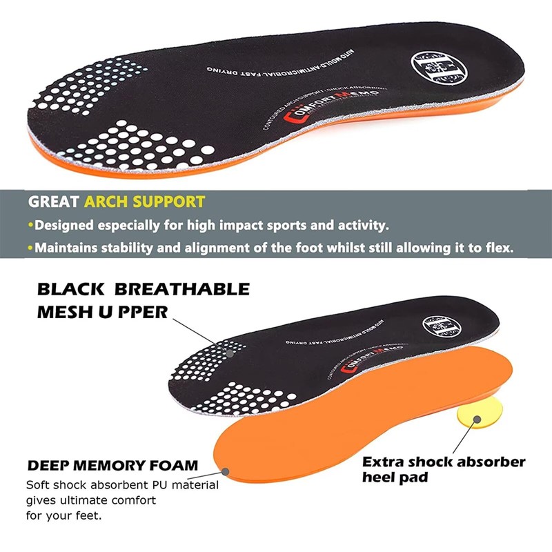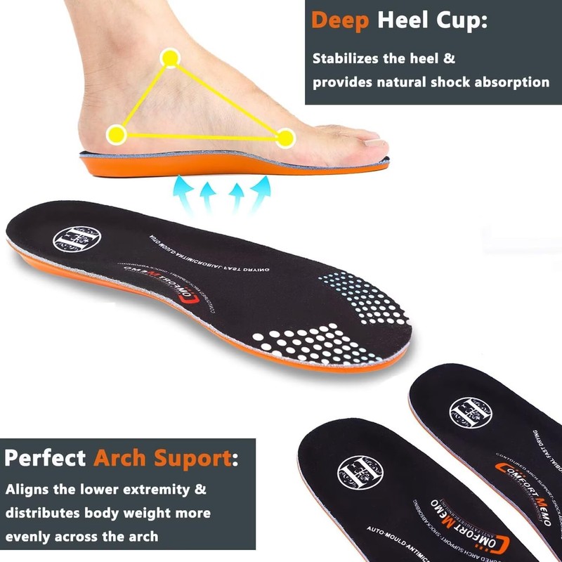 - Arch Support for Enhanced Comfort Our arch support insoles are designed to promote better foot alignment and reduce daily discomfort from flat feet, heel strain, and general foot fatigue. Enjoy all-day comfort and improved posture with every step.