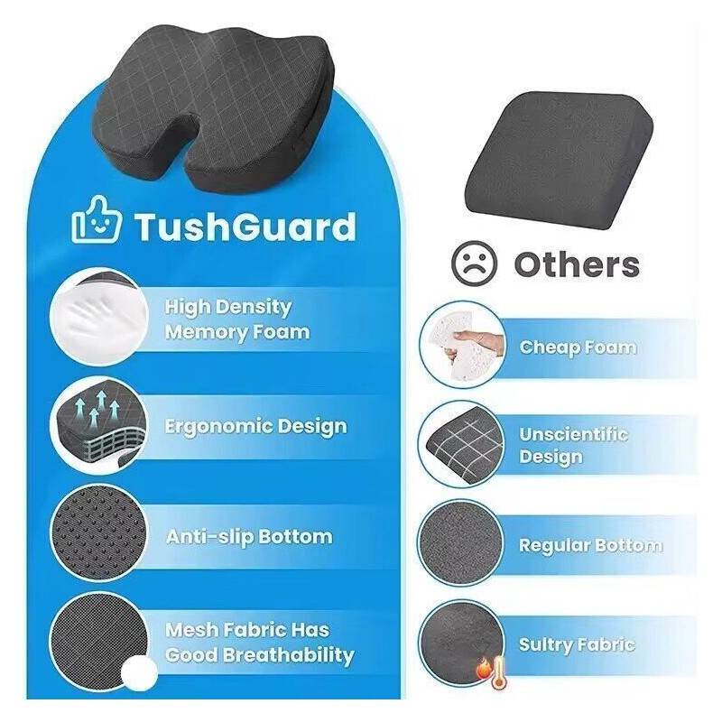 Memory Foam Seat Cushion Office Chair Car Seat Pad Coccyx Tailbone Pain Relief