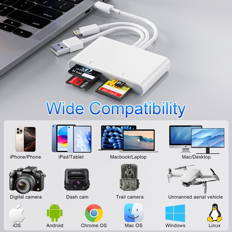- Memory Stick Pro Duo Adapter - 4 in 1 SD/microSD/MS/XD Picture Card Reader with 3 in 1 Lightning/USB-C/USB 3.0, XD Card Reader