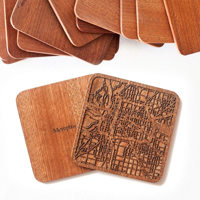 Memphis, TN Map Coaster, Set of 4, Sapele Wooden Coaster with city map, Multiple city optional, Handmade
