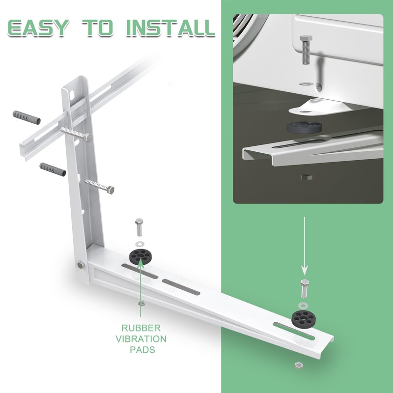 - Shock Absorption Design: Mini split wall brackets comes with shockproof rubber pads helps to avoid displacement and falling of the heat pump unit,reduce vibration and noise,better to protect the unit.