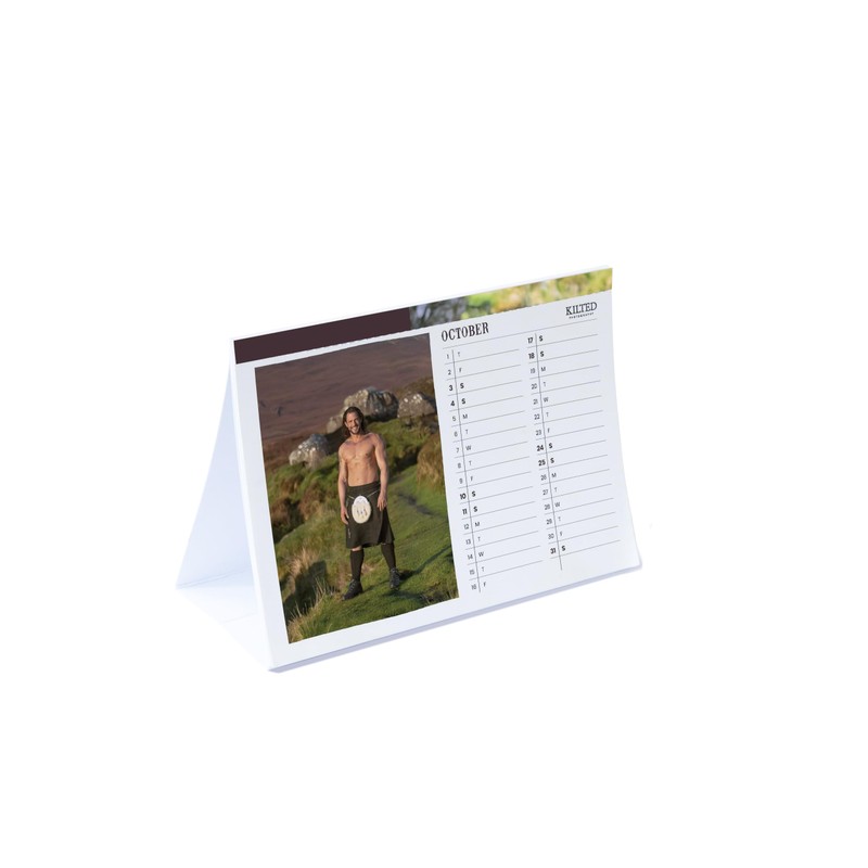 - Provocative Desk Calendar 2026: Featuring rugged Scots in traditional kilts, this Men in Kilts calendar brings year-round Highland charm to your workspace.