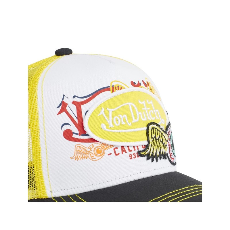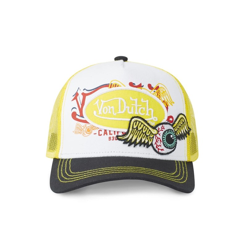 Discover the brand new Von Dutch Flying Eye! The brand offers you a cap with different designs that stand out from the battled paths, looks modern and original. On the front of the cap there is a Von Dutch Flying Eye patch.