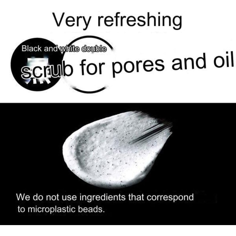 An invigorating citrus green scent; Black and white double scrubbing that removes pores and abra; This is a facial cleanser inspired by skin care that can be washed with black and white double scrubs that do not feel greasy. The scrubs are designed to fit the size of your poreBlack scrubs adheres to dirt deep into the pores, while white scrubs thoroughly clean sticky sebum that cling to your skin. Refreshing deep into your pores. Washes off very well. Contains menthol (cooling ingredient). Keeps skin clean and prevents acne Refreshing citrus green scent.