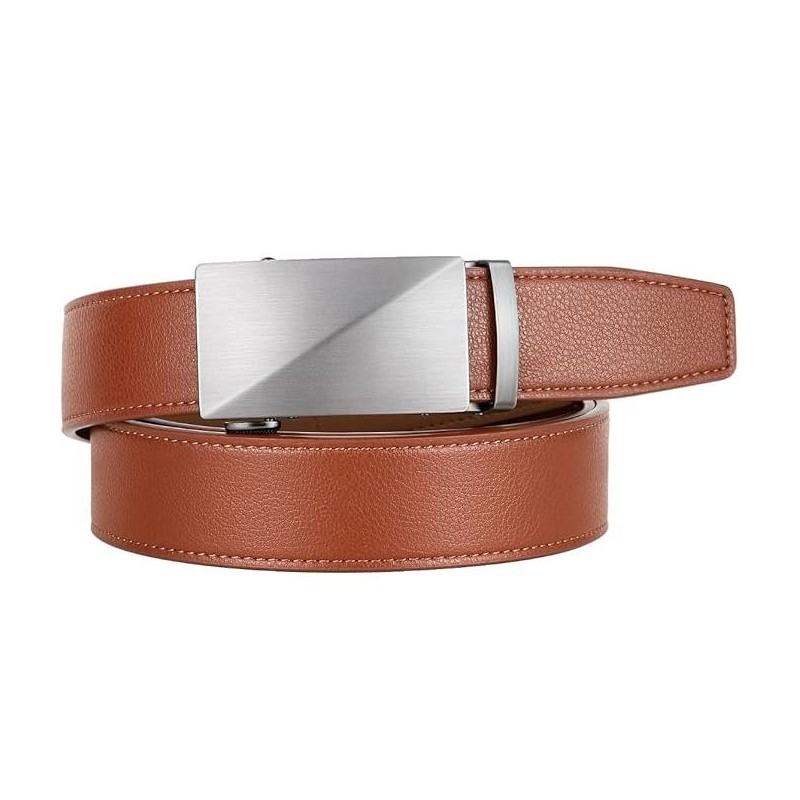 EAST TO USE BELT FOR MEN: Just slide the dress belt into the sliding buckle and pull leather belt through, the ratchet buckle auto-locks. To release the ratchet belt, gently push the release lever on the side of the automatic buckle and lock will snap. Simple, smooth and sleek.