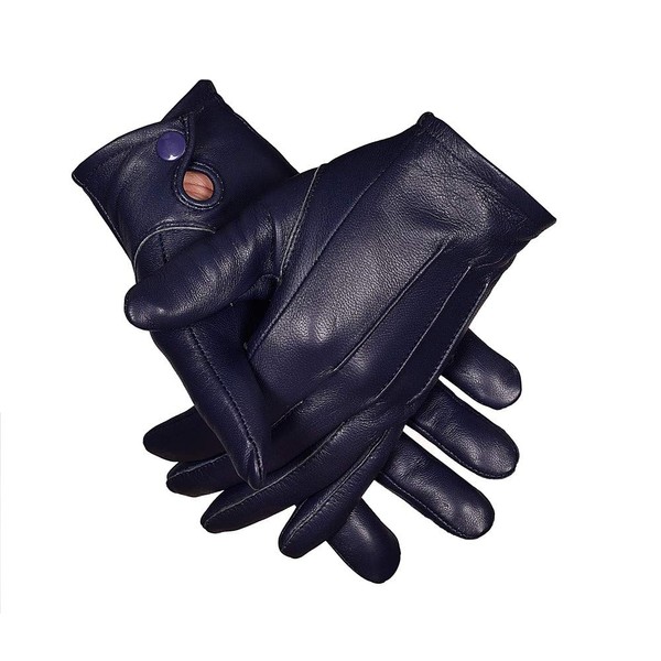 Men's Dress Leather Gloves (Large, Navy Blue)
