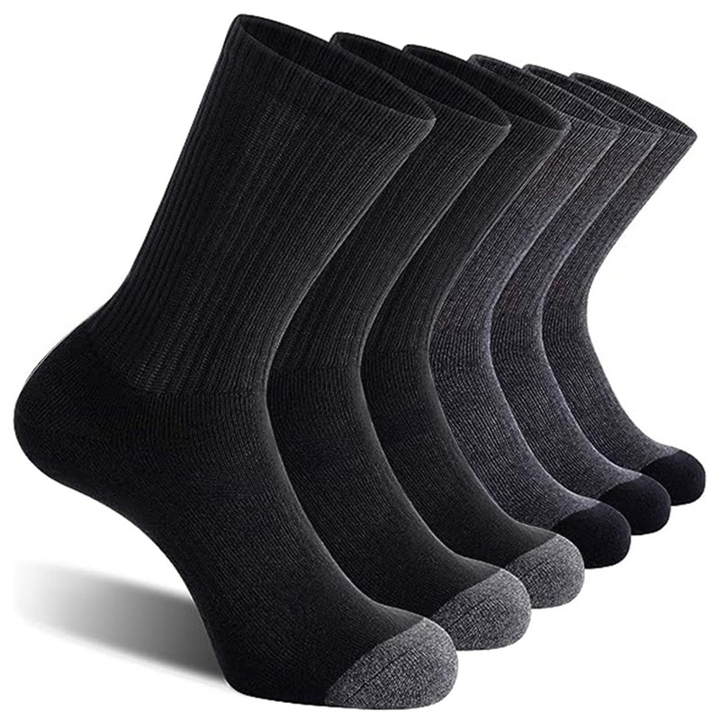 Men’s Dress Socks 6 Pairs Mens Cotton Calf Business Formal Socks Soft Breathable Athletic Long Crew Casual Socks, Cotton Men’s Socks Suitable for All Seasons (AU 7-11.5, 3 Black+3 Grey)