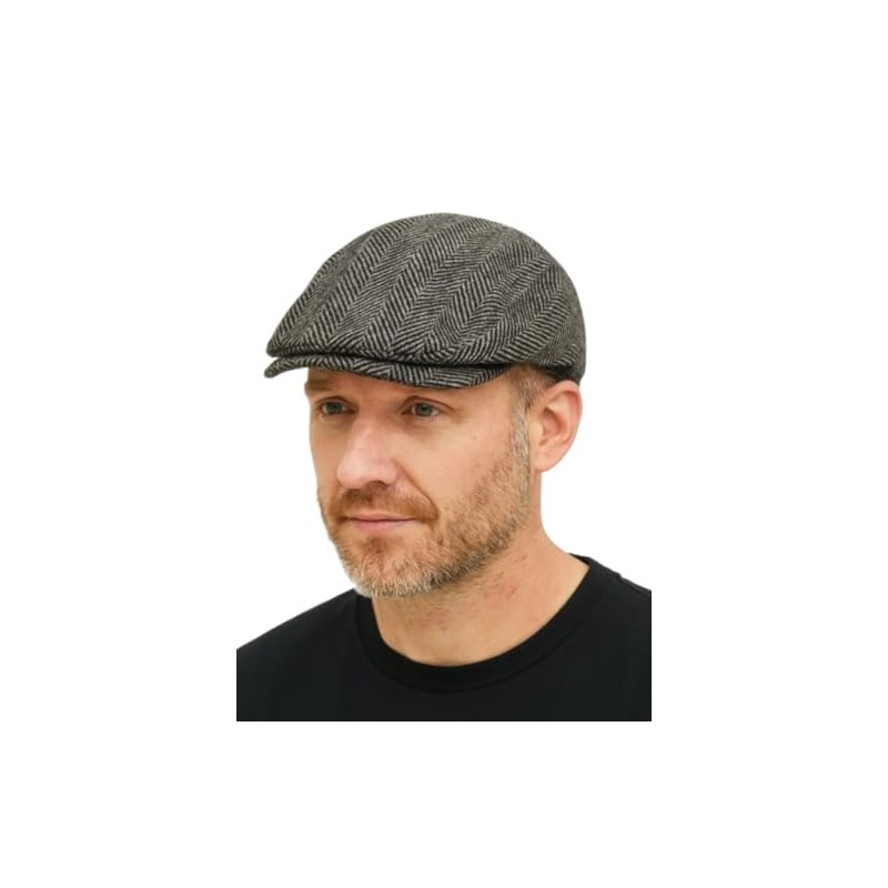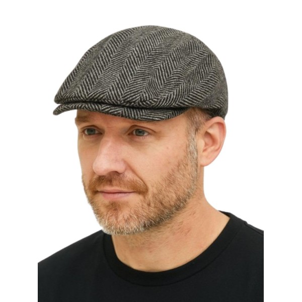 - CLASSIC DESIGN: Timeless herringbone pattern flat cap crafted from premium wool blend fabric in sophisticated light grey colour