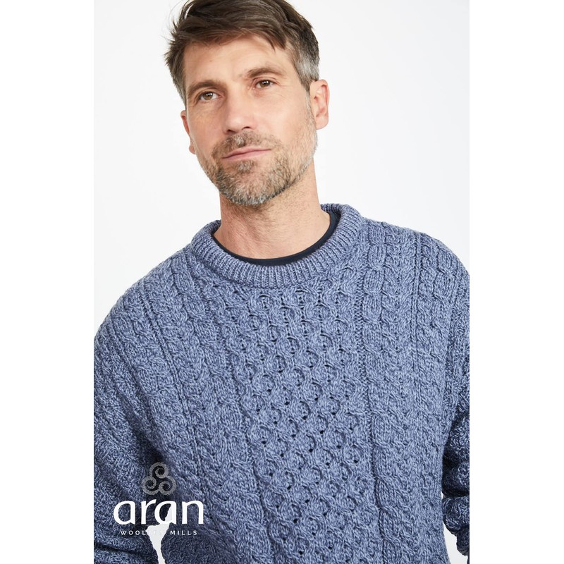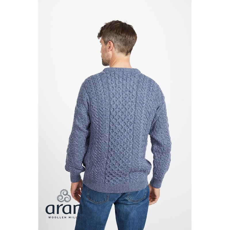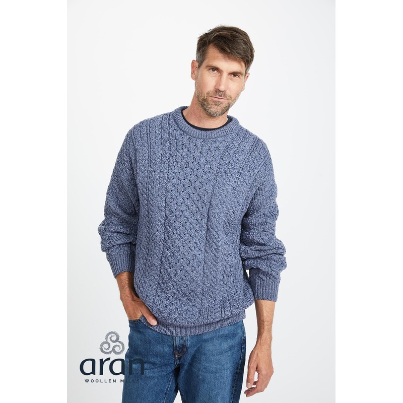 Men's Irish Traditional Aran Wool Pullover Sweater (X-Large, Denim)