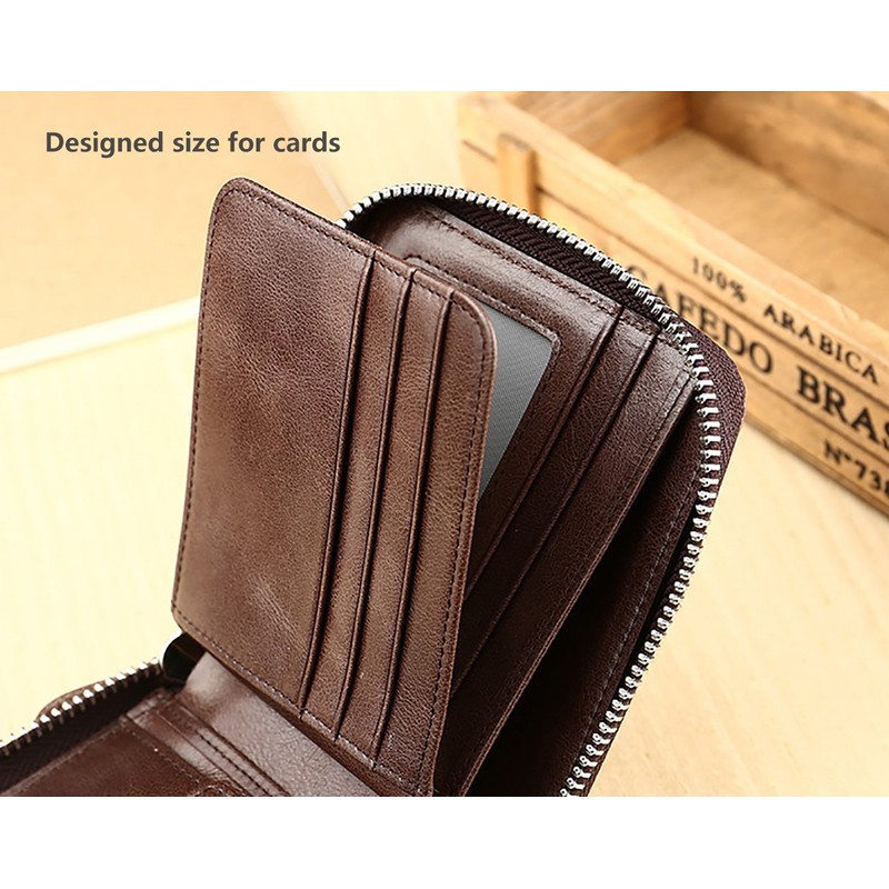 Men's Leather Zip Around Wallet ID Card Window Secure Zipper Bifold RFID