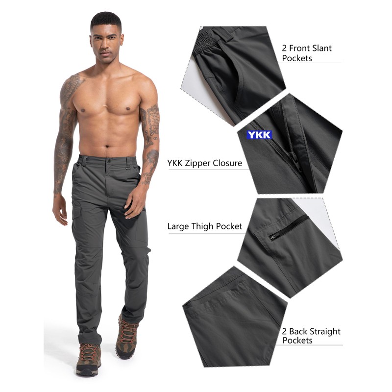Men's Lightweight Hiking Cargo Work Pants Quick Dry Water Resistant Fishing Travel Climbing Outdoor Stretch Pants Dark Grey 40
