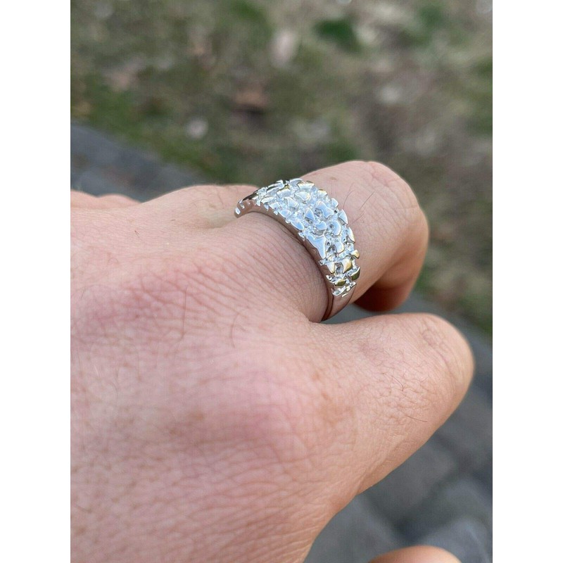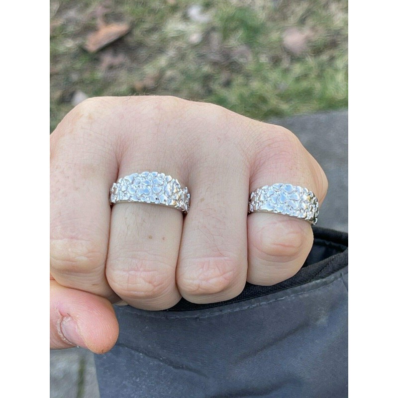 - Solid 925 Sterling Silver Mens Nugget Ring - Not Plated Or Filled - Solid Silver LIFETIME PIECE