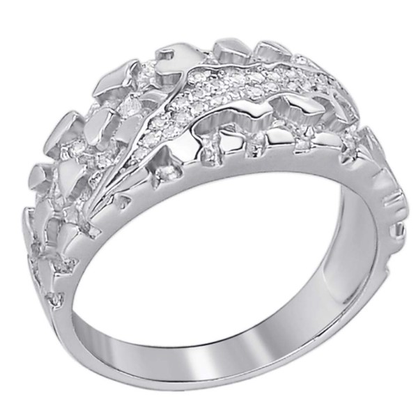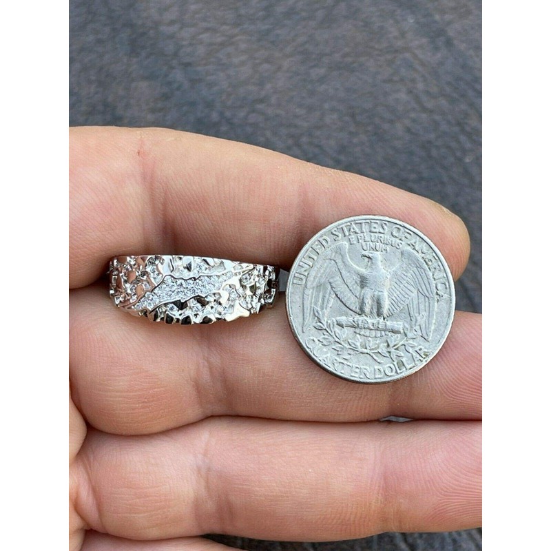 Men's Nugget Ring - Plain Solid 925 Sterling Silver Ring - Iced Cz Claw Mark - Sizes 6-13 (6)