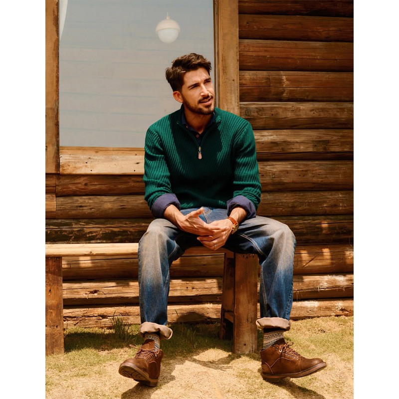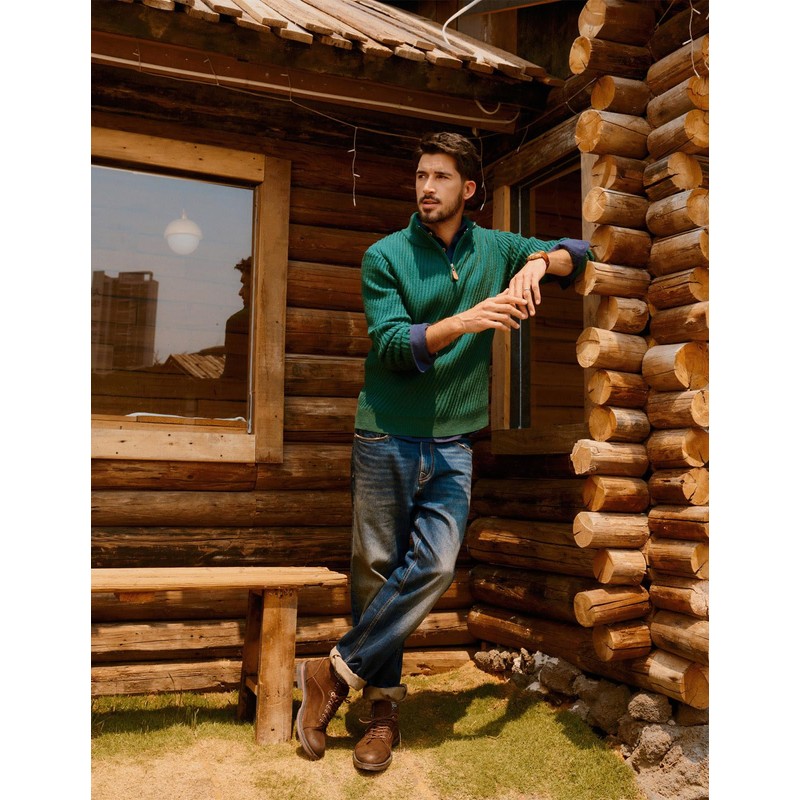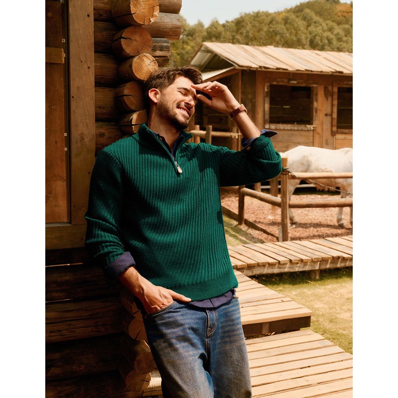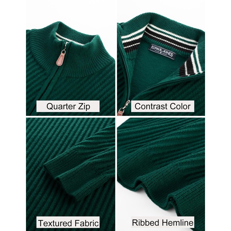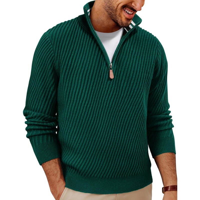 Men's Quarter Zip Pullover Sweater Mock Neck Knit Sweater Soft Texture Sweater Green