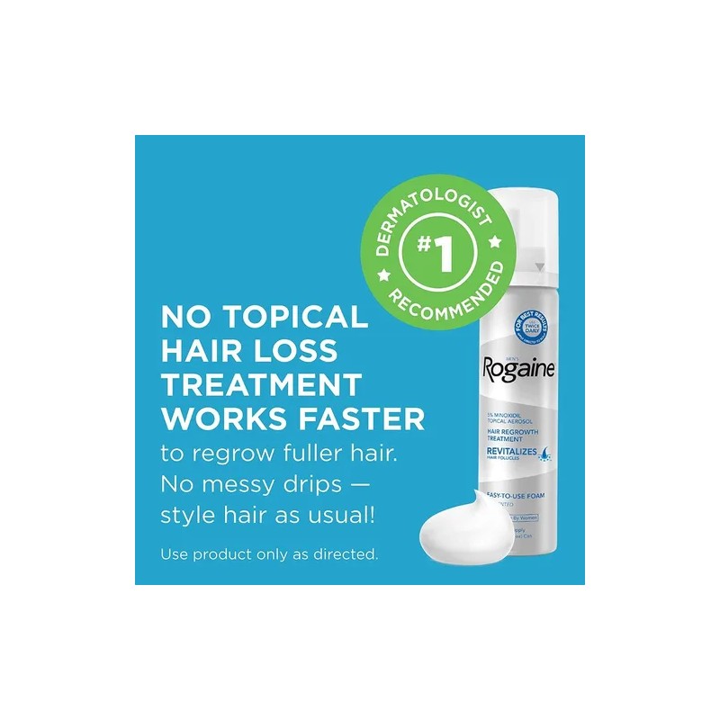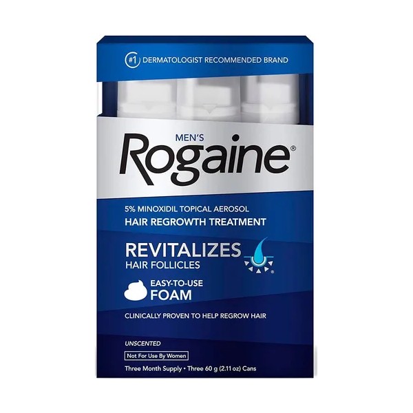Rogaine 5% Minoxidil Foam para hombres es un tratamiento para el crecimiento del cabello que ayuda a tratar la caída del cabello, mantener la densidad del cabello y permitir que vuelva a crecer el cabello más abundante.