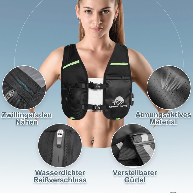 - Safe travel: the hydration vest running has reflective strips on the front and back; improves visibility in low light conditions and protects the wearer during night running, cycling and other outdoor activities