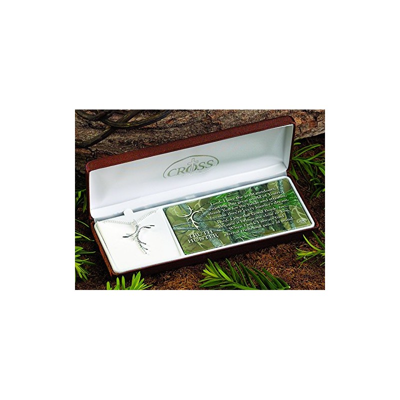 Men's Silver Plated Antler Cross Necklace - Truth Hunter