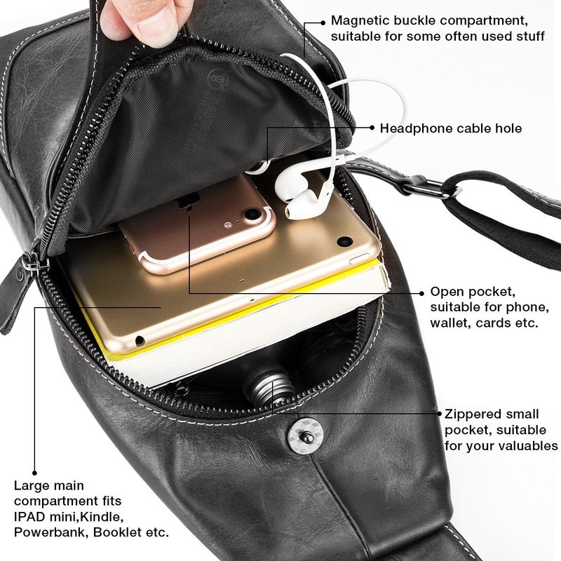 Men's Sling Bag Genuine Leather Chest Shoulder Backpack Cross Body Purse Water Resistant Anti Theft For Travel Hiking School