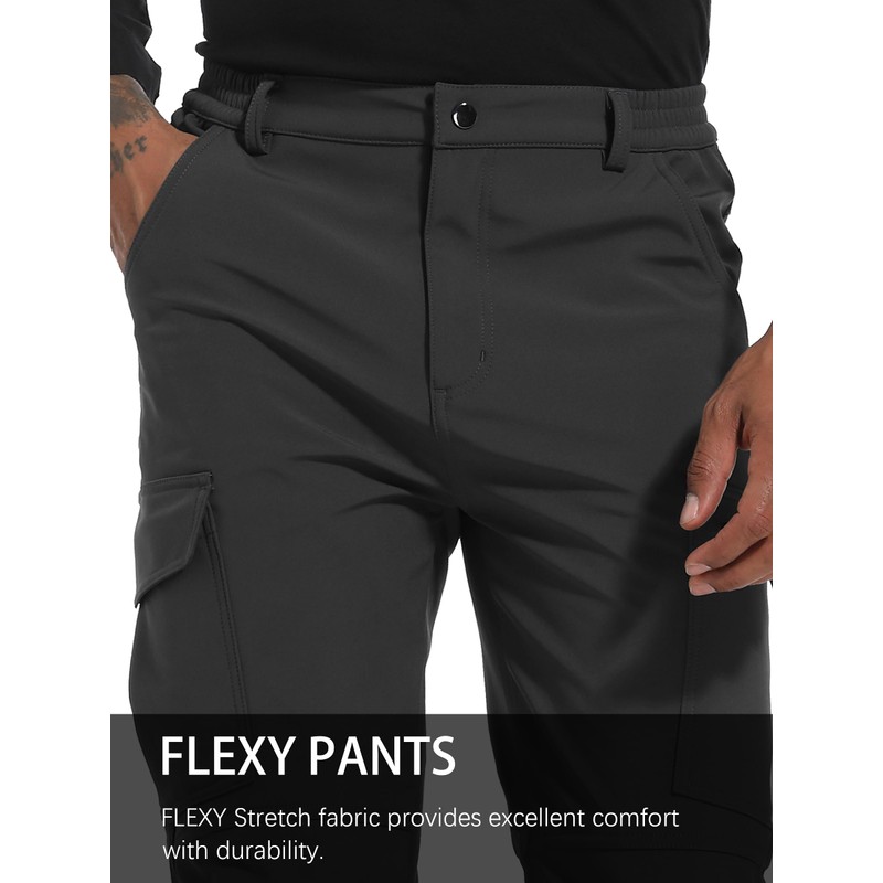 Men's Snow Ski Hiking Pants Winter Fleece Lined Softshell Outdoor Waterproof Insulated Cargo Work Pants Dark Grey XS