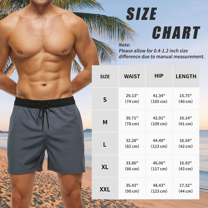 - Adjustable waist: men's swimming shorts have an elastic waistband and an adjustable drawstring. Waistband can stretch 5 to 15 cm to ensure a perfect fit. You don't have to worry about the shorts slipping during sports.