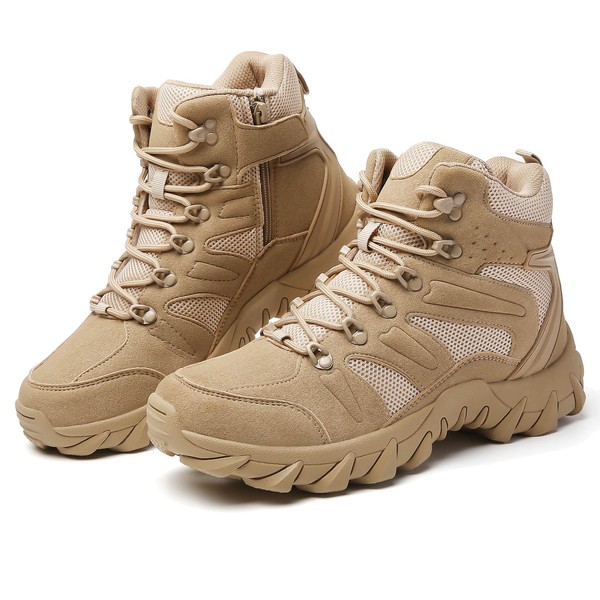 Men’s Tactical Boots 6 Inches Lightweight Military Work Combat Boots Ankle Desert Motorcycle Boot Deep Tan-40