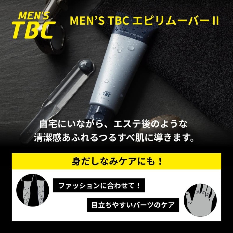 • MEN'S TBC Epi Remover II: This hair removal cream has been developed to focus on the hair and skin unique to men. The exclusive TBC's unique shape spatula allows you to apply cream evenly and remove unwanted hair