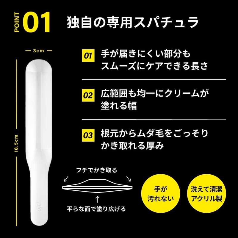 Comes with TBC's unique shape spatula. Applies cream uniformly & removes excess hair, removes hair from the roots. Smooth cream is easy to apply and holds a variety of hair including thick hair, long hair, and fine hair.