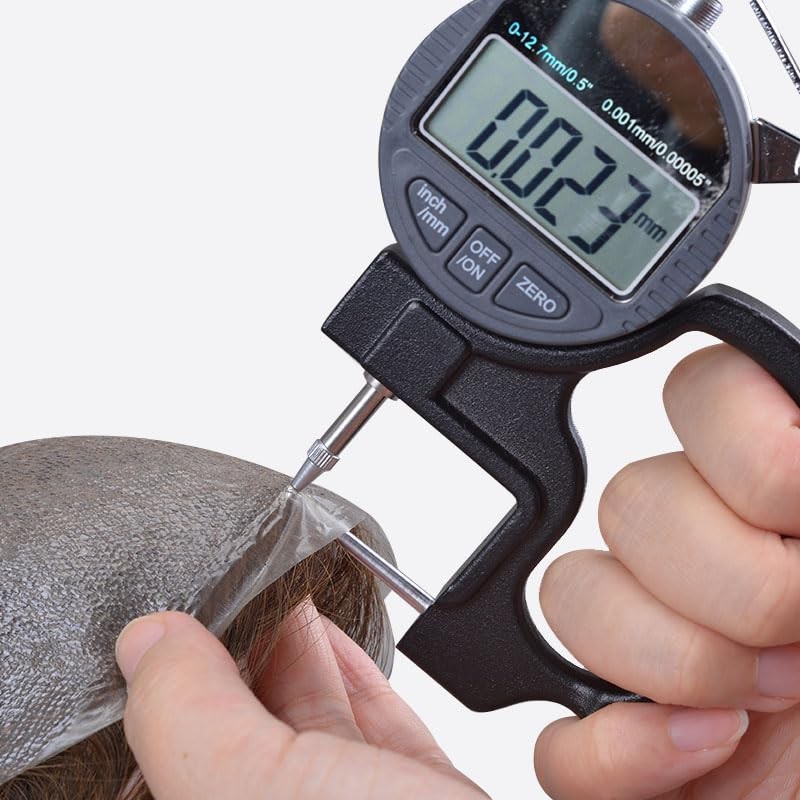 - 3. Toupee for men uses ultra-thin hair system, it is the latest CNG skin method, the thinnest skin currently on the market, with a thickness of 0.02-0.03 mm. It feels almost imperceptible weight on the head when wearing this feather-light hair system.