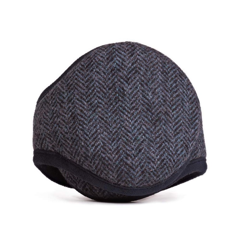Men's Wool Behind-the-Head Ear Warmer (Navy Herringbone)