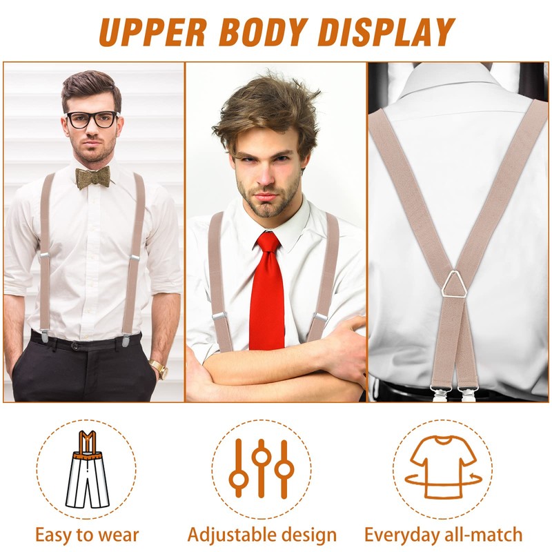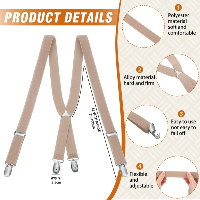 - EASY TO MATCH The adjustable suspenders are available in beige. You don't have to worry about the data falling out easily. They are suitable for combining your most types of garments such as shirts, sweatshirts and son and show your personal taste and style