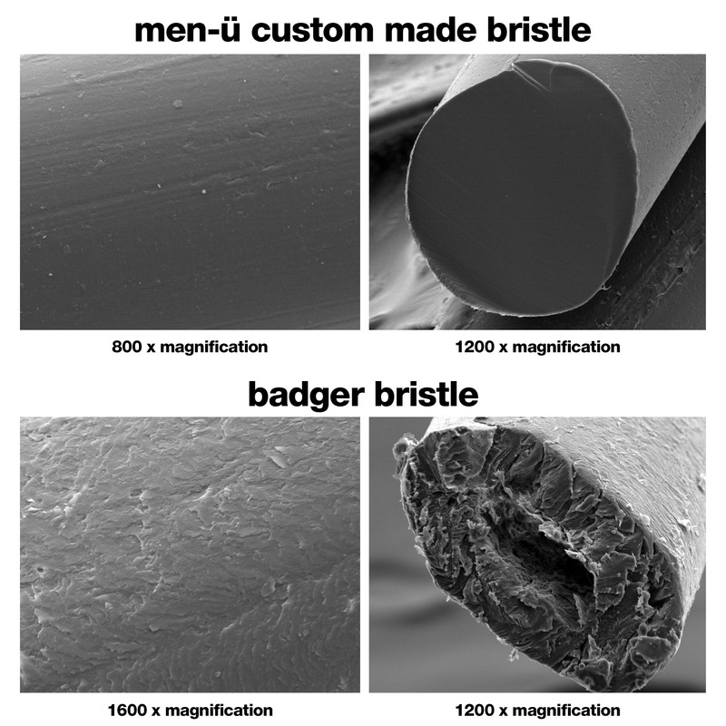 • Exclusive men-ü bristles are smooth, solid, and non-absorbent.
