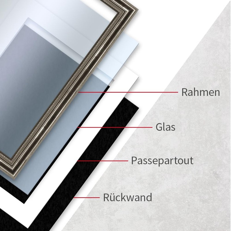 - Picture frame in the size 21 x 29.7 cm DIN A4 - the size is the picture size indicated - a mount is not included