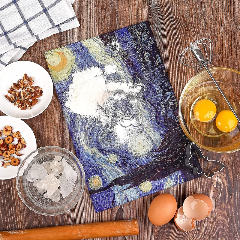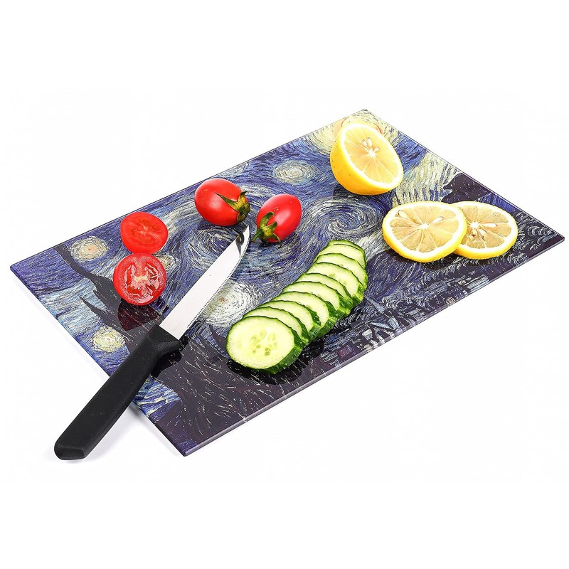 Menesia Tempered Glass Cutting Board for Kitchen, Van Gogh Design Blue Starry, Small Heat Resistant Cutting Boards, Dishwasher Safe Chopping Board(Small 8x12inch)
