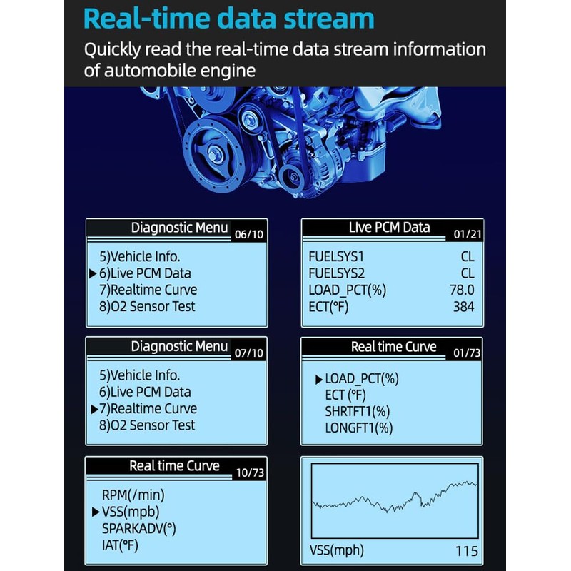 - ✔Comprehensive Engine Diagnostics--The OBD2 Scanner allows you to quickly read engine fault codes and clear the check engine light, making your automotive troubleshooting simple and efficient.