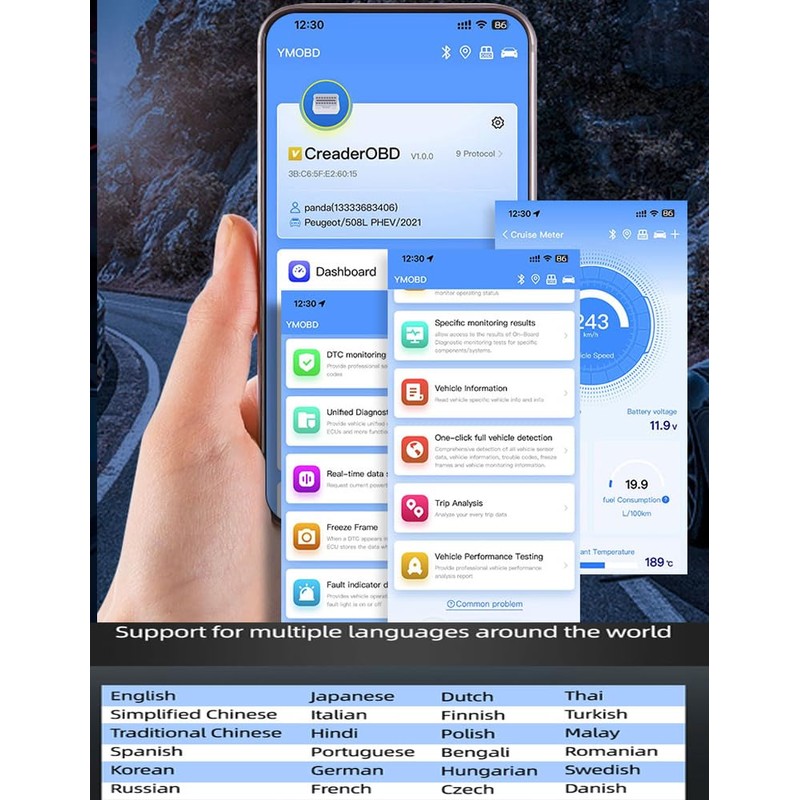 - 🗺️Multilingual Support for Global Users--The OBD2 diagnostic tool includes 10 international languages with an option to expand to 24 languages through the connected app. Enjoy hassle-free diagnostics with clear understanding, regardless of your language preference.