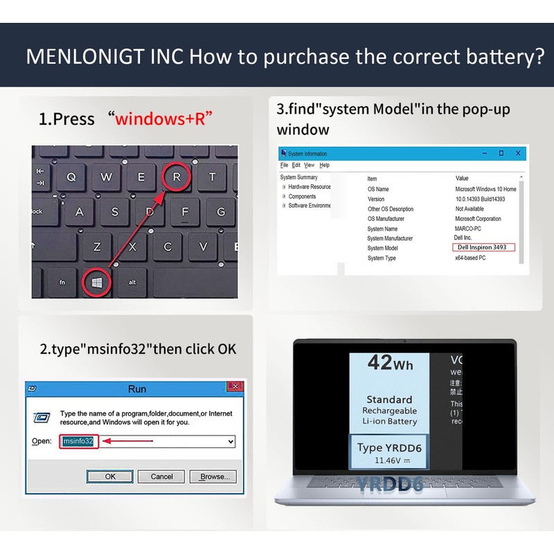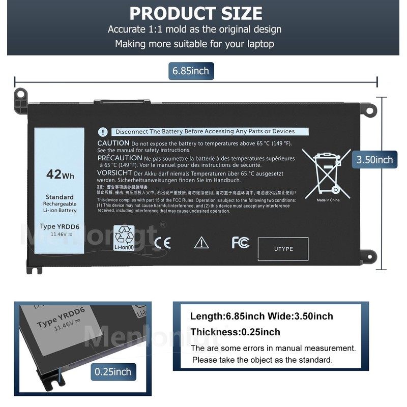 - HIGH PERFORMANCE MENLONIGT Dell YRDD6 42W Replacement Battery for yrdd6 dell Battery - US UPDATE 2025!!!! - Reliable Battery and Performance!!!