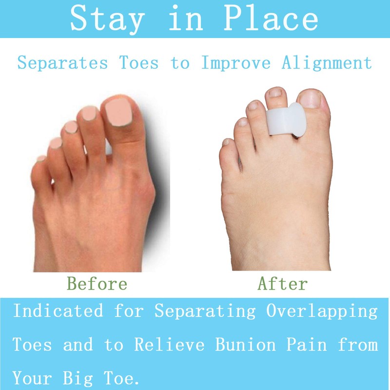 - Easy to Use: Simply put the ring of the gel toe separator on the second toe and position the gel pad between the big toe and the second toe. The strongly supportive gel cushion will keep the big toe in place and prevent it from overlapping and rubbing against the second toe.