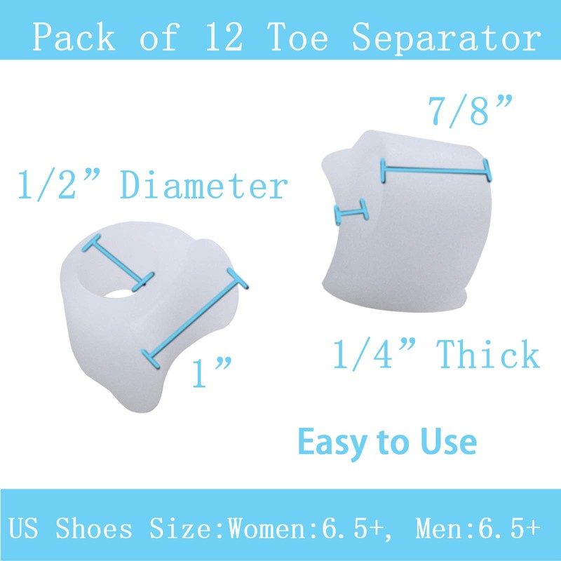 - Soft and Comfortable: Toe separators made of soft and durable silicone, latex-free, washable and reusable gel toe spacers can be comfortably worn in shoes, allowing you to stand or walk in comfort for longer periods of time.