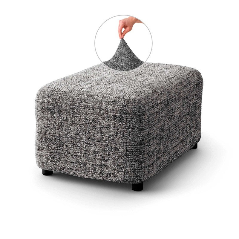 Menotti Footstool Ottoman Foot Rest Slip Cover for Sofa and Armchair Stretch Elastic Fabric Protector Microfibra Printed- Vittoria Grey (Footstool)