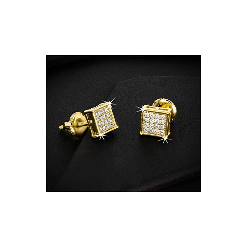 Mens Ladies 14K Gold Over Silver Lab Diamond Earrings Screw Back Studs Iced Out aretes para hombre - Men's Earrings, Screw Back, Men's Jewelry, Hip hop Earring