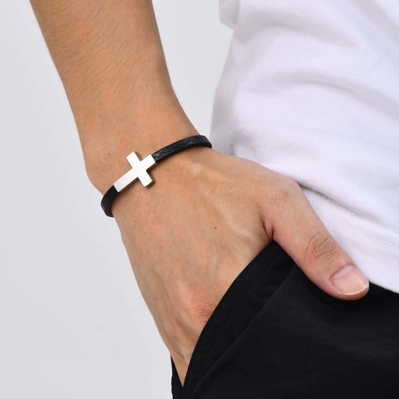 - ✝️【Cross Faith Bracelet】This cross bracelet will bring you closer to God and keep you in your own jewelry style. Mens cross bracelet use meaningful cross religious design as a symbol of salvation, faith and hope, and also represents God's blessing. The cross bracelet can be worn during prayer or meditation sessions, or simply as a personal reminder of faith or belief, making it perfect for all Christian men.