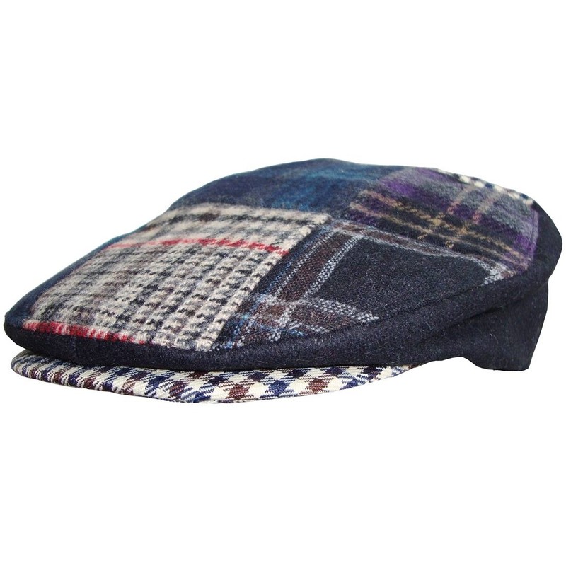 Mens Patchwork Tweed Country Flat Cap (58cm, Blue/Grey)