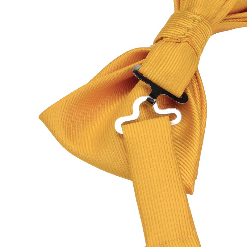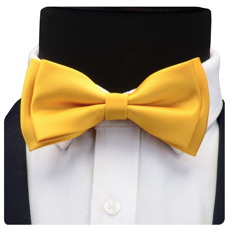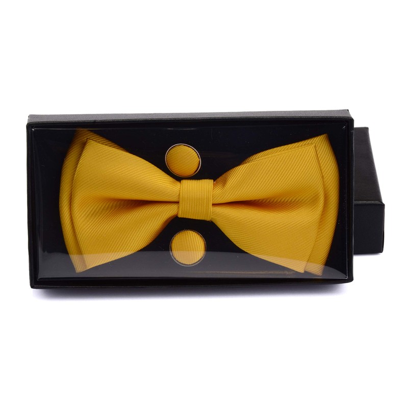 Mens Solid Gold Bow tie for Wedding Pre-tied Yellow Bowtie and Pocket Square Cufflink Sets (0577-14)