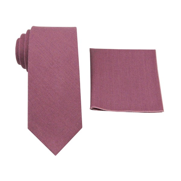 Mens Solid Linen Tie and Pocket Square Set - Slim - Regular - Extra Long Necktie (Chianti, Extra Long Tie)