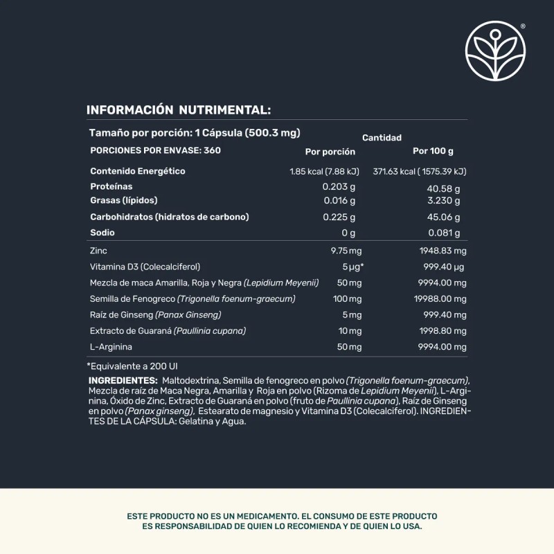 Mens Testo Life360 Fenogreco, Maca, L-Arginina Suplemento Alimenticio Para Hombre 360 Cpsulas Sin Sabor. Testosterona Hombre
