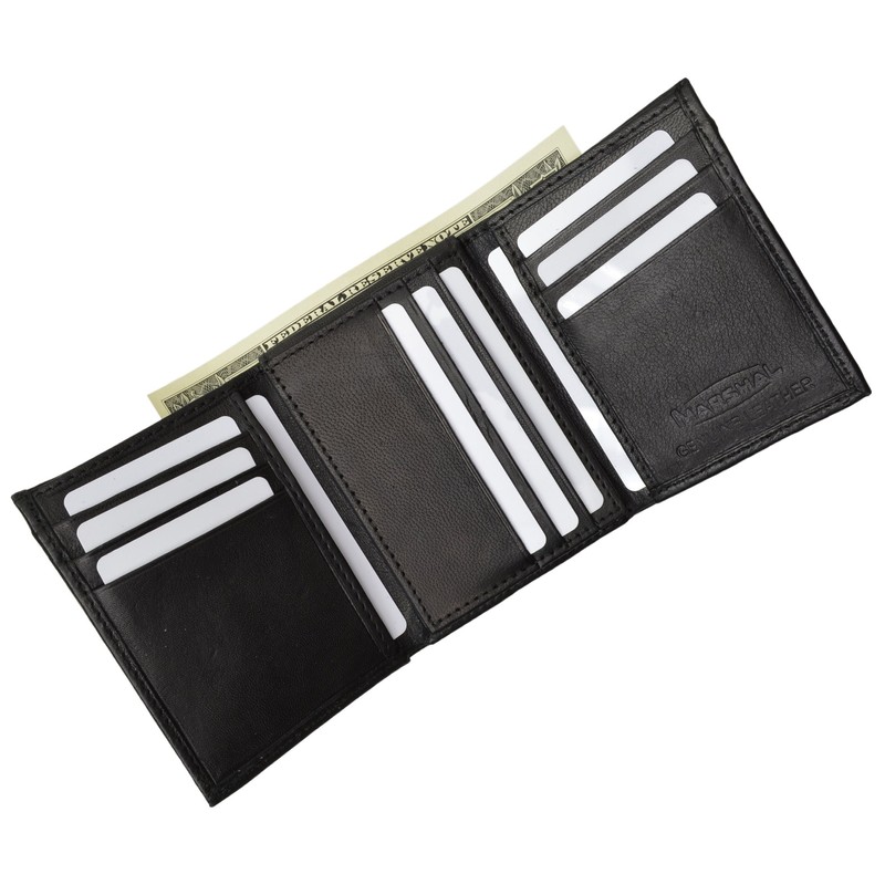 Mens Trifold Wallet Extra Capacity Inside Slots 2 ID Windows by Marshal ®