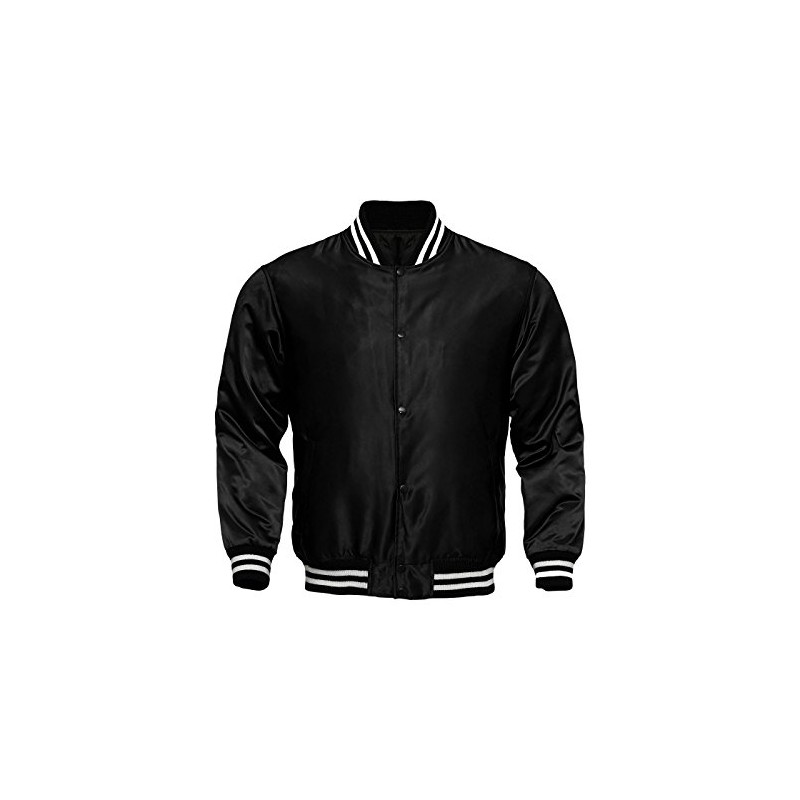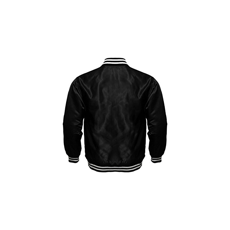 Mens Varsity Jacket Satin Polyester Retro Zip Casual Jackets (Black, Large)